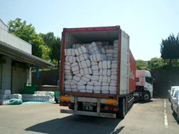 1200枚単位で梱包され、40フィートコンテナに積み込まれ、日本へ。